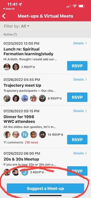 We recommend using Meet Ups in the Community section of the app to schedule a meeting with a group.