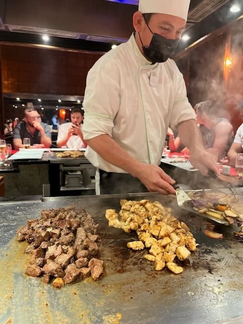 Two places stood out to me. The first, Beach Grill. The tacos were great, burgers and fries were also good, BUT it all just tastes so much better when you are eating it while sitting on a lounge chair on the beach! The other stand out is Hashiru Teppanyaki, this Japanese cuisine is as much about the experience as you gather around the iron grill as it is food. Do be aware that this is about a 90-minute experience.